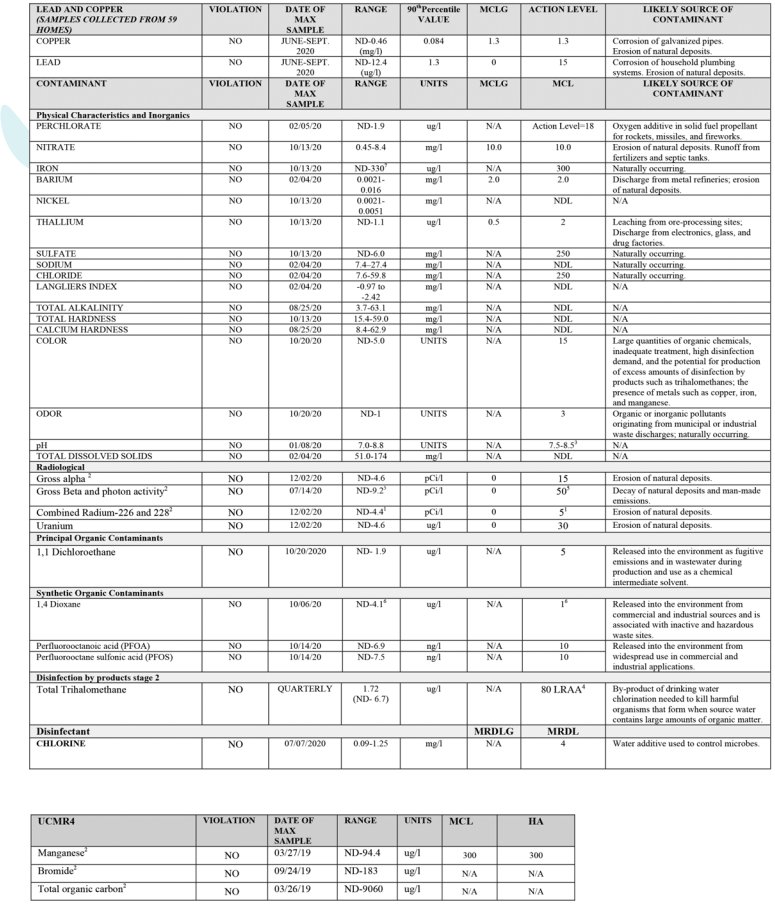 The most recent publicly available numbers for measured contaminant levels in Hempstead tap water are in its 2020 Water Quality Report. As you can see, there are levels which the EPA considers to be acceptable, but being below the maximum allowable level doesn’t necessarily mean the water is healthy.